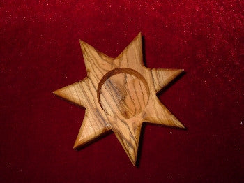 Hand Carved Olive Wood 6 Sided Star (Star of David) Votive Candle Holder
